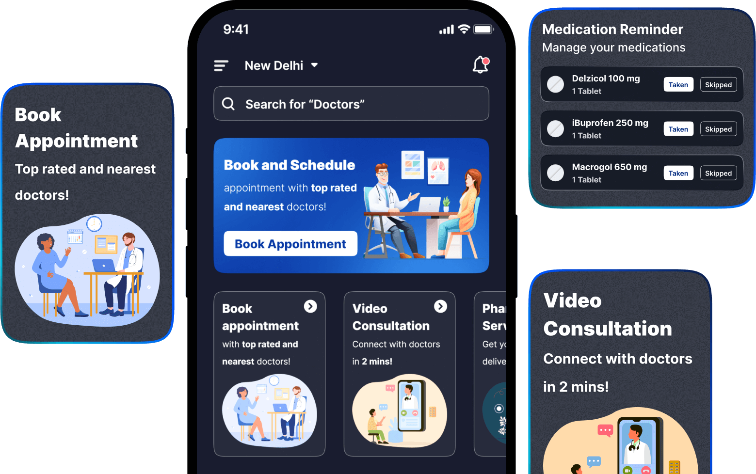Ready to level up your health game? Apollo’s got everything you need – find doctors, book appointments, track family health, and explore personalized care plans. It’s your go-to health hub, built for effortless wellness. Dive into the features that make managing your health a breeze!